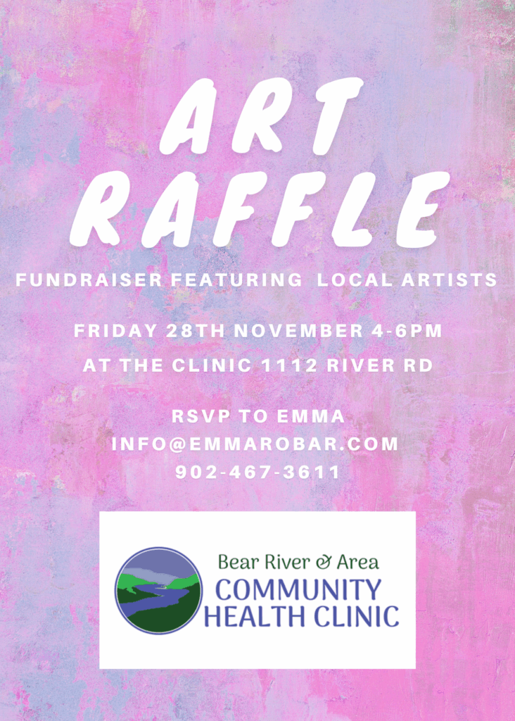 ART RAFFLE FUNDRAISER Join us for an Art Raffle fundraiser and community event on Friday November 28th from 4-6pm. Featuring art from local artists, you’ll have a chance to win by purchasing raffle tickets and dropping them in on your favourite pieces. Tickets are $5 each or 3 for $10. Light bites and non-alcoholic drinks provided. Formal wear encouraged. Winners will be drawn at the end of the evening. RSVP by emailing Emma info@emmarobar.com or calling 902-467-3611